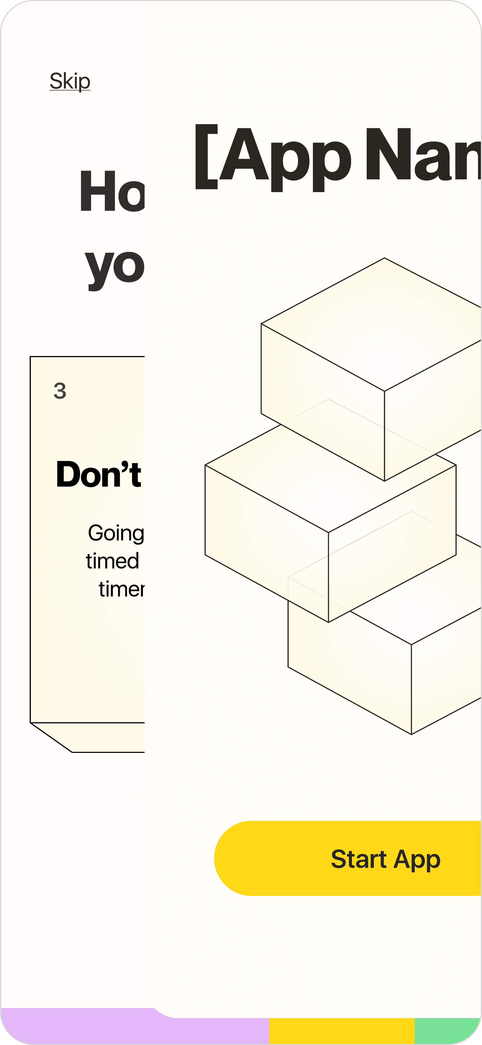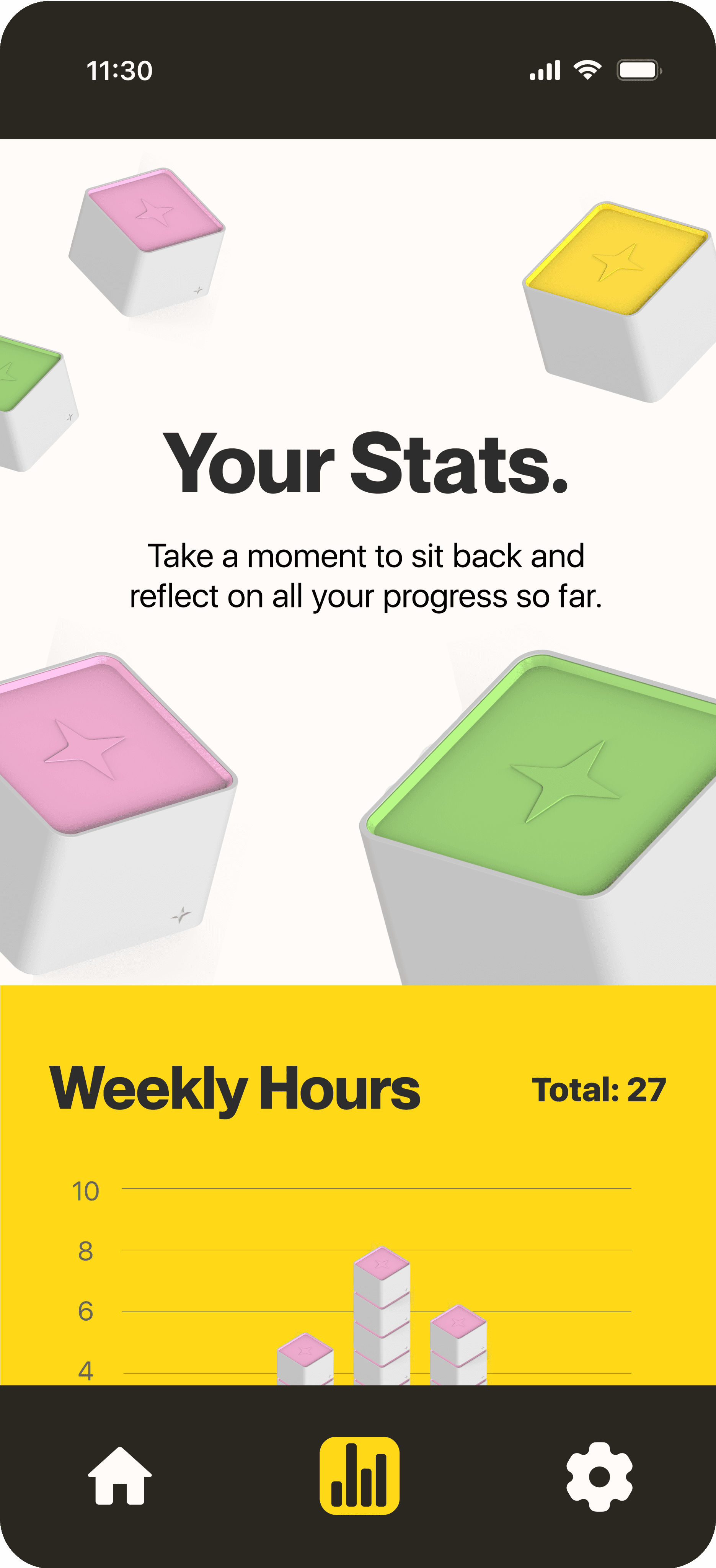 We changed the flow of the onboarding animation to be more playful and to imitate how the user would use the physical product - by stacking the blocks.