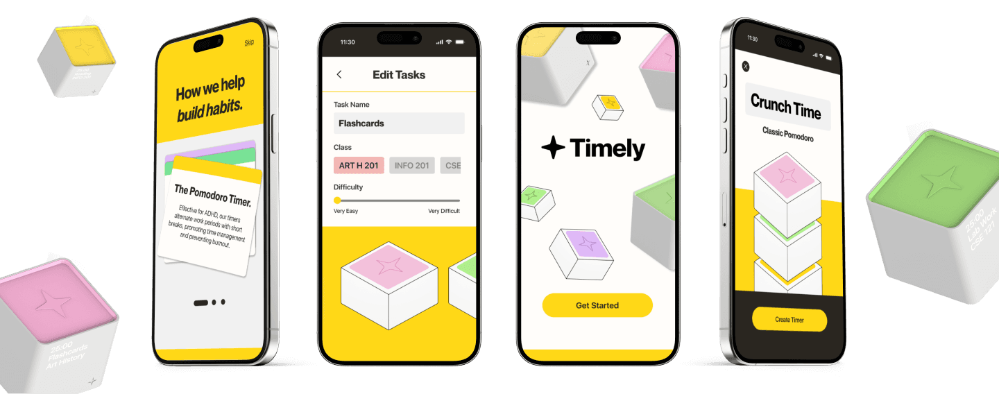 Timely sought to provide uninterrupted study sessions using a tactile product that would connect to an interface aligning the student’s study strategy with their academic success.