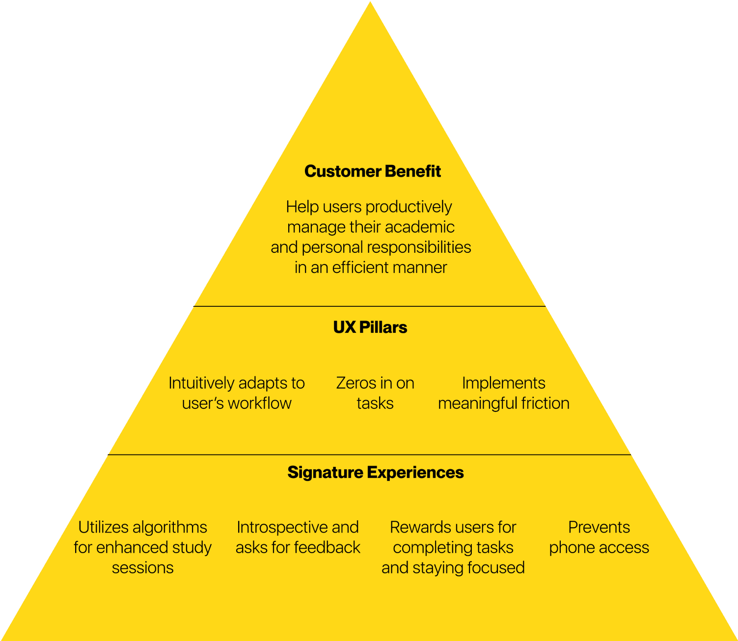 Preventing Burnout: Academic burnout was the most prominent takeaway from our user research. By promoting maintainable study habits and appropriately timed breaks, our product would encourage sustained academic success over a longer period of time.